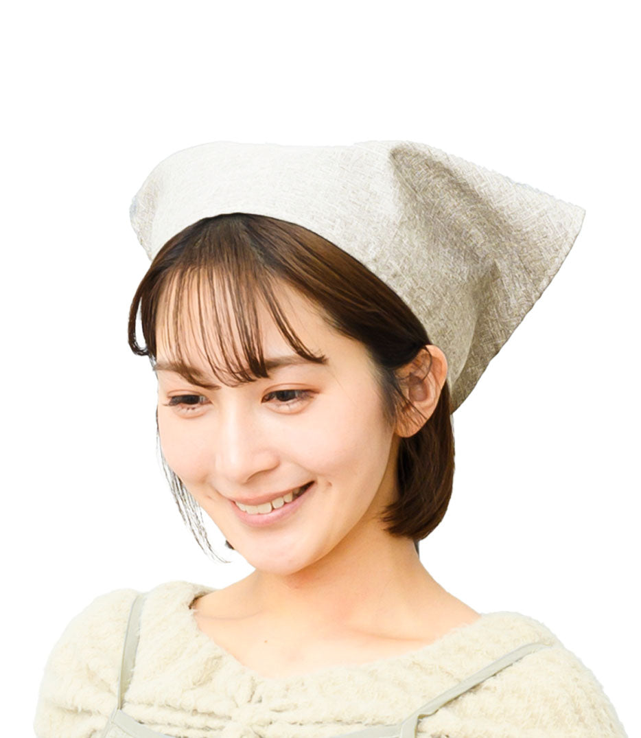長めの生地が後頭や結んだ髪もしっかりと覆い、髪が落ちることを防ぐので調理や清掃時などに最適です。