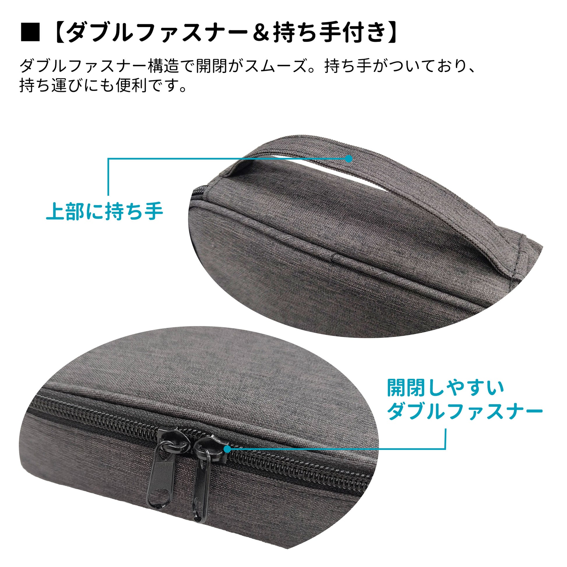 - ■【頑丈なファスナー&持ち手付き】 ダブルファスナー構造で開閉がスムーズ。持ち手がついており、持ち運びにも便利です。