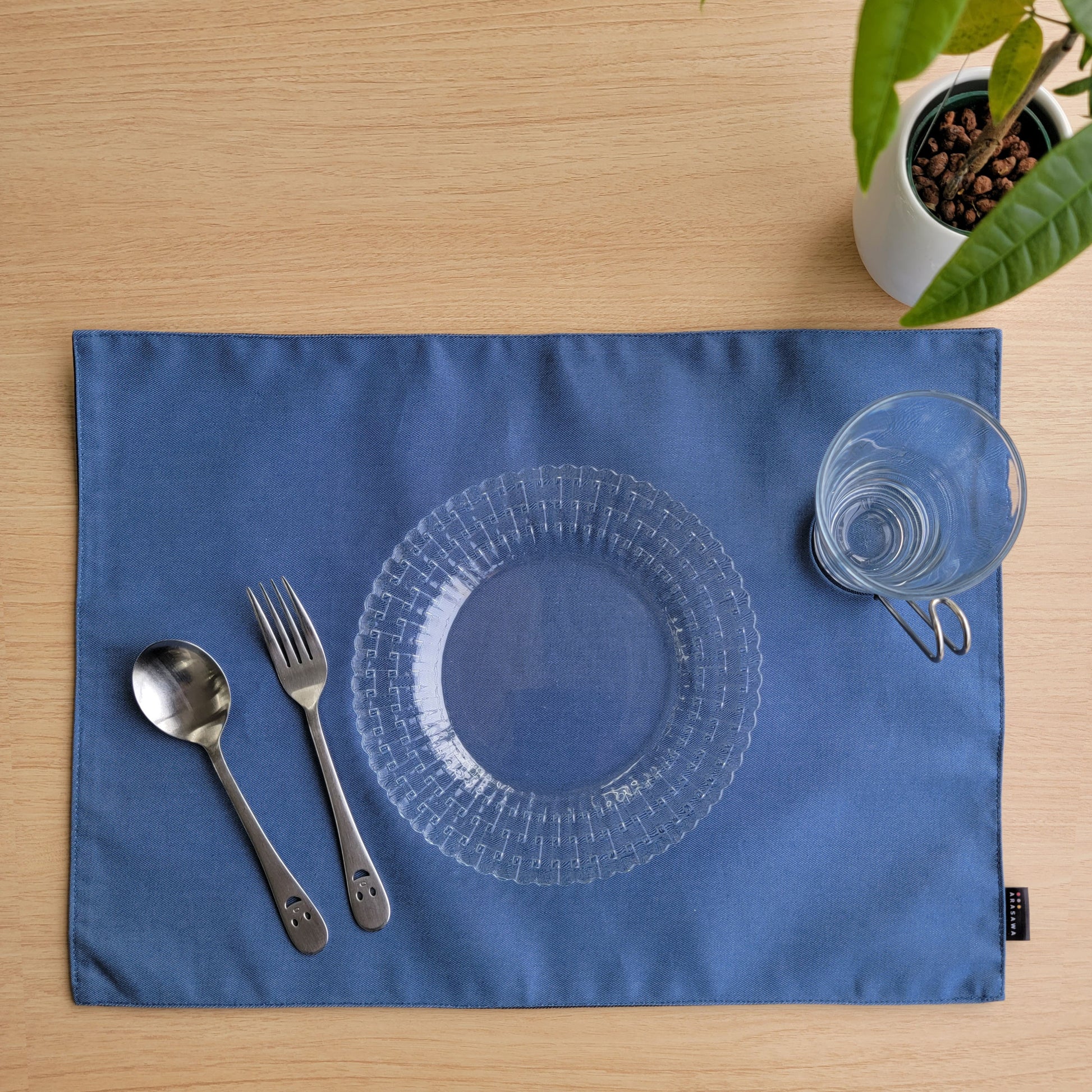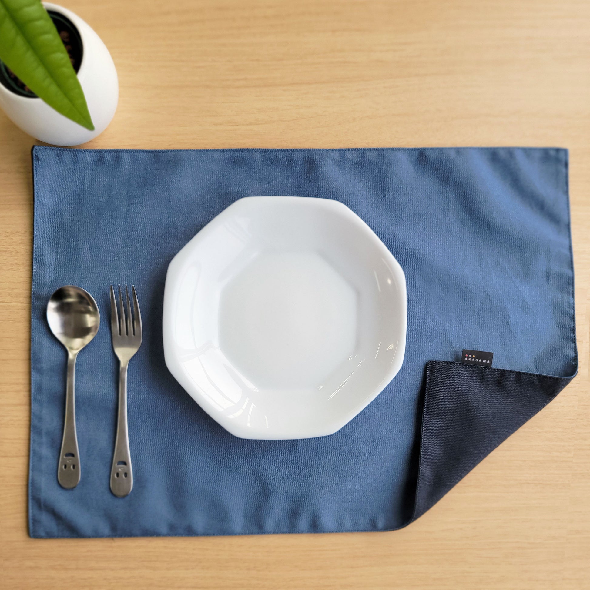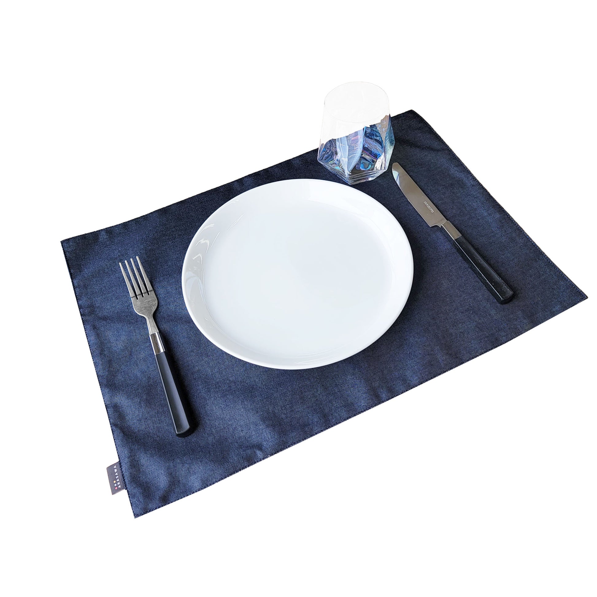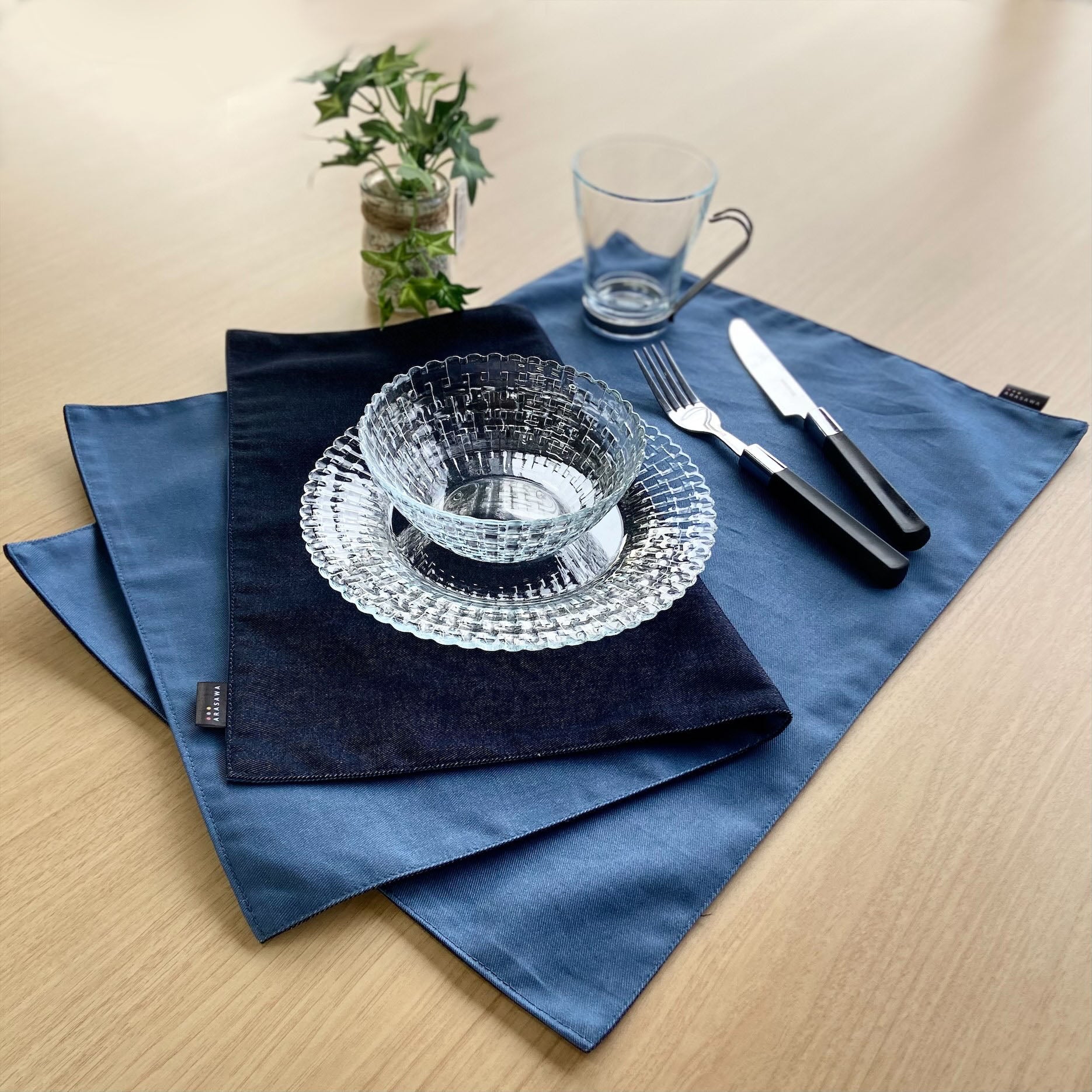 丈夫でやわらかな綿とポリエステル交織デニムを使用し、「洗濯してもシワになりにくく、乾きやすい」ランチョンマット。